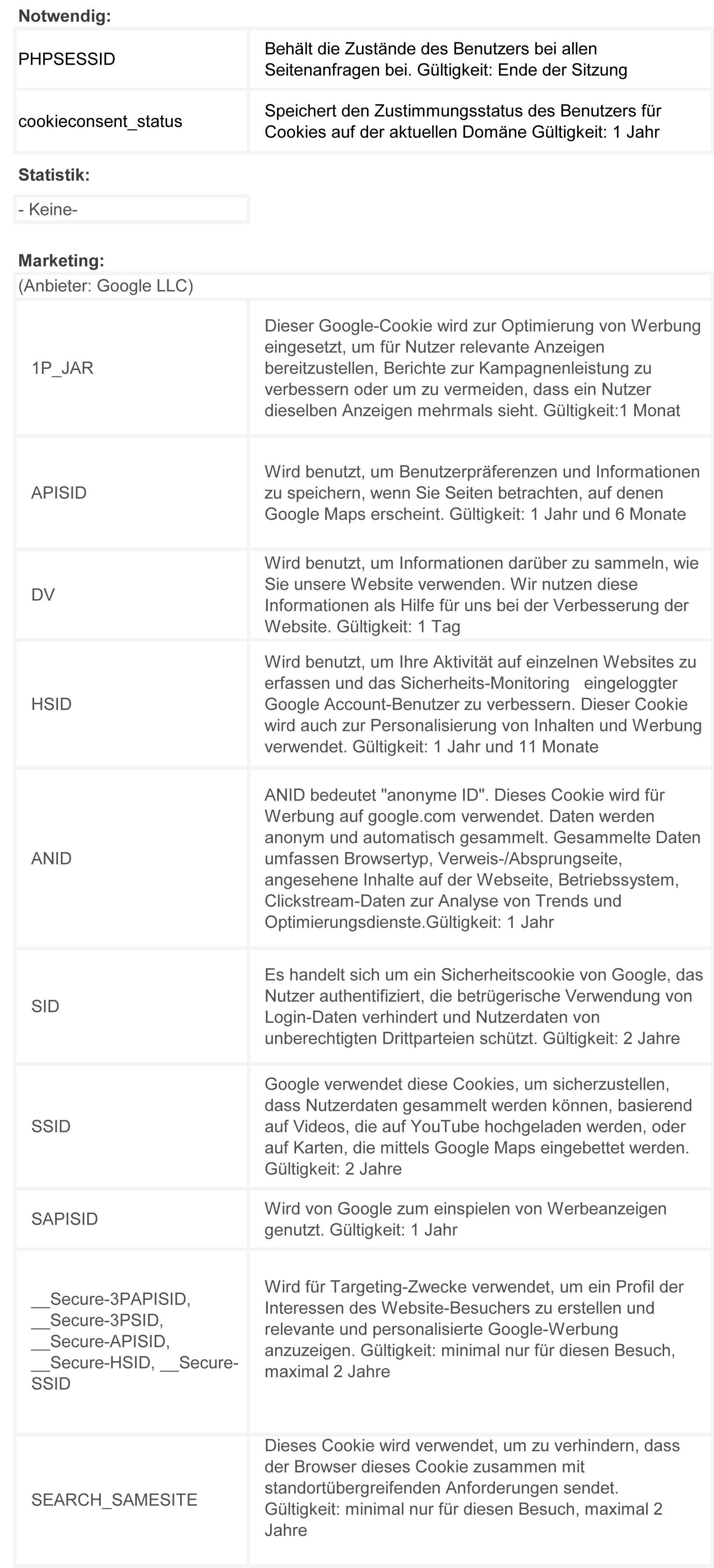 Verwendete Cookies: